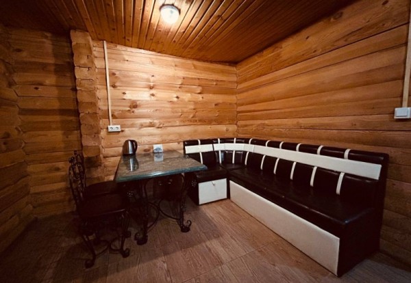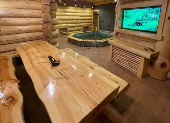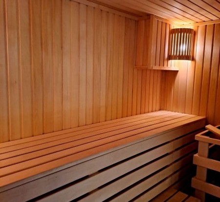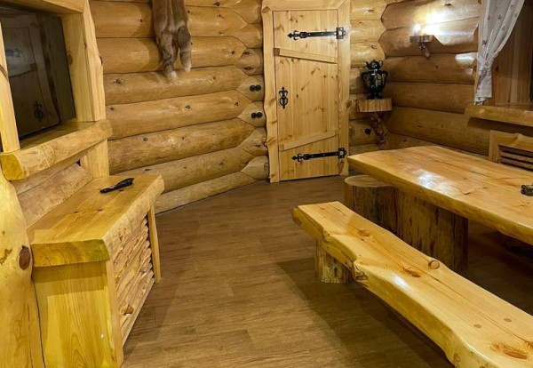 В сауне имеются: финская парная до 110 градусов, бассейн-купель 4x4 м. (с донным гейзером и водопадом, с системой двойной фильтрации с ультрофиолетом), большой банкетный зал вместимостью до 30 человек, электрокамин, TV, DVD, Wi-Fi, караоке, комната отдыха, массажное кресло, бильярдный стол.