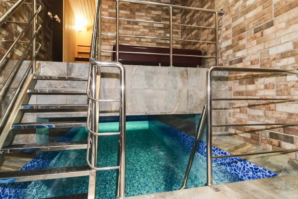 Большой бассейн с горкой, джакузи, финская и турецкая парные .